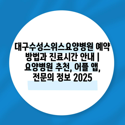 대구수성스위스요양병원 예약 방법과 진료시간 안내 | 요양병원 추천, 어플 앱, 전문의 정보 2025