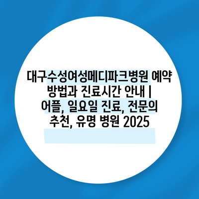 대구수성여성메디파크병원 예약 방법과 진료시간 안내 | 어플, 일요일 진료, 전문의 추천, 유명 병원 2025