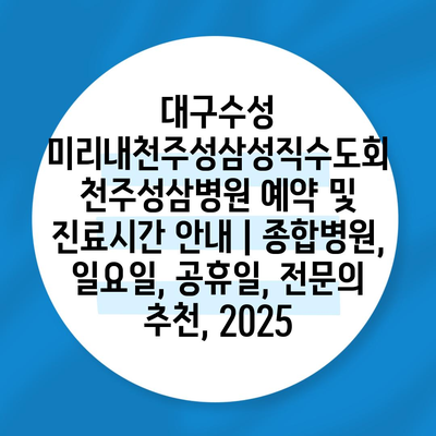 대구수성 미리내천주성삼성직수도회 천주성삼병원 예약 및 진료시간 공지 | 종합병원, 일요일, 공휴일, 전연락 추천, 2025 에 대해 자주 묻는 질문 TOP 5