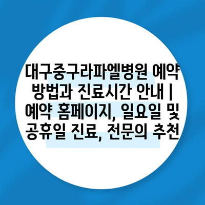 대구중구라파엘병원 예약 방법과 진료시간 공지 | 예약 홈페이지, 일요일 및 공휴일 진료, 전연락 추천 에 대해 자주 묻는 질문 TOP 5