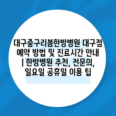 ✅ 대구중구리봄한방병원 예약 방법과 진료 시간을 자세히 알아보세요.