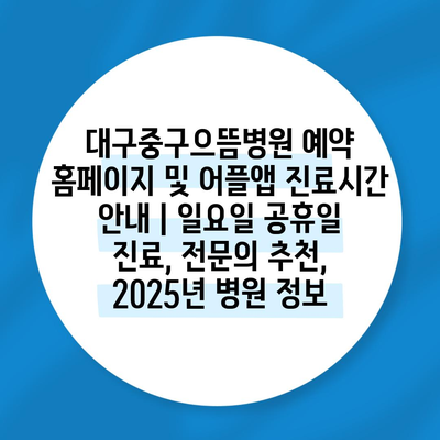 대구중구으뜸병원 예약 홈페이지 및 어플앱 진료시간 안내 | 일요일 공휴일 진료, 전문의 추천, 2025년 병원 정보