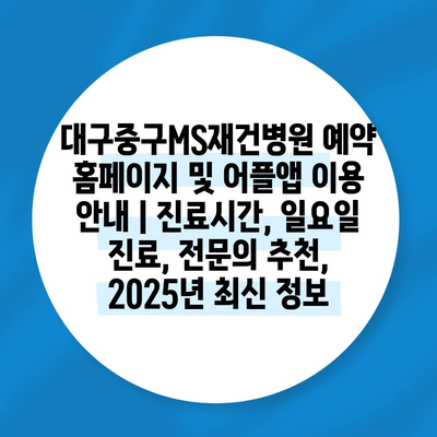 ✅ 대구중구MS재건병원 예약 방법과 진료시간을 지금 바로 확인하세요!