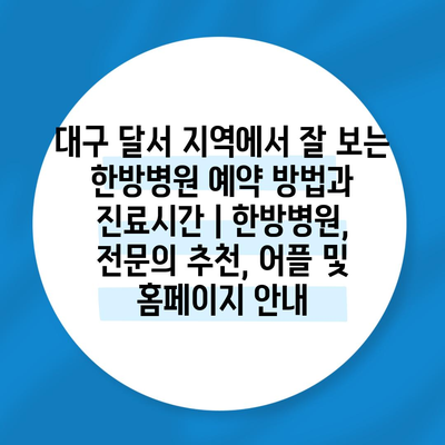 ✅ 대구 달서 지역 한방병원의 예약 꿀팁을 지금 알아보세요!