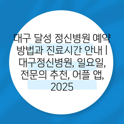 대구 달성 정신병원 예약 방법과 진료시간 공지 | 대구정신병원, 일요일, 전연락 추천, 어플 앱, 2025 에 대해 자주 묻는 질문 TOP 5