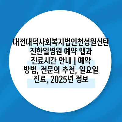 대전대덕사회복지법인천성원신탄진한일병원 예약 앱과 진료시간 공지 | 예약 방법, 전연락 추천, 일요일 진료, 2025년 정보 에 대해 자주 묻는 질문 TOP 5