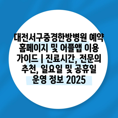 대전서구중경한방병원 예약 홈페이지 및 어플앱 이용 설명서 | 진료시간, 전연락 추천, 일요일 및 공휴일 운영 정보 2025 에 대해 자주 묻는 질문 TOP 5