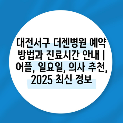 대전서구 더젠병원 예약 방법과 진료시간 공지 | 어플, 일요일, 의사 추천, 2025 최신 정보