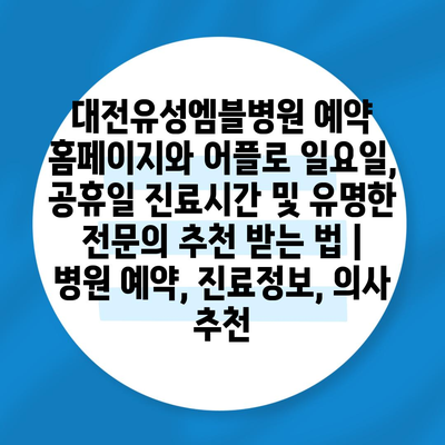 대전유성엠블병원 예약 홈페이지와 어플로 일요일, 공휴일 진료시간 및 유명한 전문의 추천 받는 법 | 병원 예약, 진료정보, 의사 추천