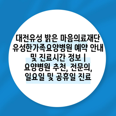 ✅ 유성한가족요양병원 예약 방법과 진료시간을 지금 확인하세요!