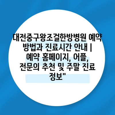 대전중구왕조걸한방병원 예약 방법과 진료시간 공지 | 예약 홈페이지, 어플, 전연락 추천 및 주말 진료 정보에 대해 자주 묻는 질문 TOP 5