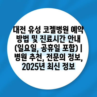 대전 유성 코젤병원 예약 방법 및 진료시간 안내 (일요일, 공휴일 포함) | 병원 추천, 전문의 정보, 2025년 최신 정보