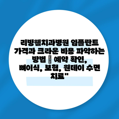 리빙웰치과병원 임플란트 가격과 크라운 비용 파악하는 방법 | 예약 확인, 뼈이식, 보험, 원데이 수면 치료”
