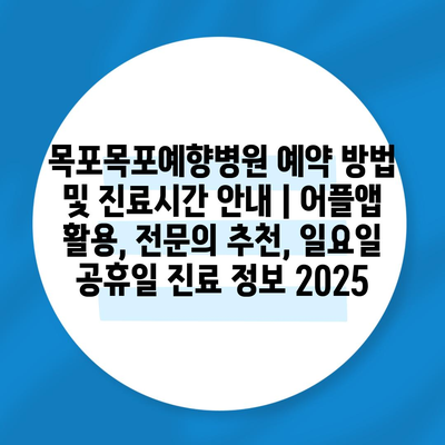 목포목포예향병원 예약 방법 및 진료시간 공지 | 어플앱 활용, 전연락 추천, 일요일 공휴일 진료 정보 2025에 대해 알아보겠습니다.