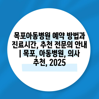 목포아동병원 예약 방법과 진료시간, 추천 전연락 공지 | 목포, 아동병원, 의사 추천, 2025 에 대해 자주 묻는 질문 TOP 5