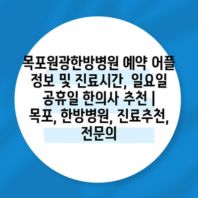 목포원광한방병원 예약 어플 정보 및 진료시간, 일요일 공휴일 한의사 추천 | 목포, 한방병원, 진료추천, 전연락 에 대해 자주 묻는 질문 TOP 5