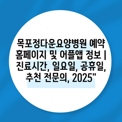 목포정다운요양병원 예약 홈페이지 및 어플앱 정보 | 진료시간, 일요일, 공휴일, 추천 전연락, 2025″에 대해 자주 묻는 질문 TOP 5