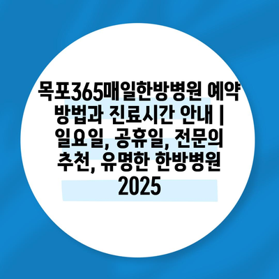 목포365매일한방병원 예약 방법과 진료시간 공지 | 일요일, 공휴일, 전연락 추천, 유명한 한방병원 2025에 대해 알아보겠습니다.