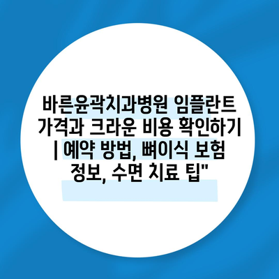 바른윤곽치과병원 임플란트 가격과 크라운 비용 확인하기 | 예약 방법, 뼈이식 보험 정보, 수면 치료 팁