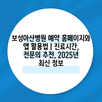 보성아산병원 예약 홈페이지와 앱 활용법 | 진료시간, 전문의 추천, 2025년 최신 정보