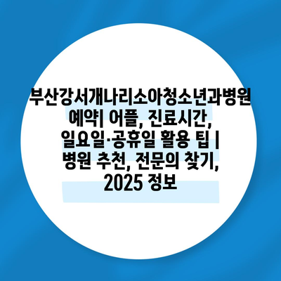 ✅ 부산강서개나리소아청소년과병원 예약 방법을 자세히 알아보세요.