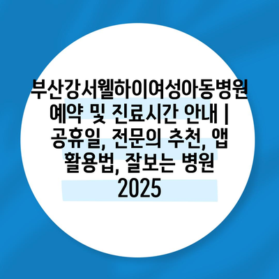 부산강서웰하이여성아동병원 예약 및 진료시간 공지 | 공휴일, 전연락 추천, 앱 활용법, 잘보는 병원 2025 에 대해 자주 묻는 질문 TOP 5