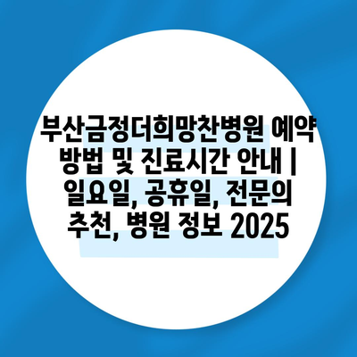 부산금정더희망찬병원 예약 방법 및 진료시간 공지 | 일요일, 공휴일, 전연락 추천, 병원 정보 2025 에 대해 자주 묻는 질문 TOP 5