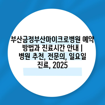 부산금정부산마이크로병원 예약 방법과 진료시간 공지 | 병원 추천, 전연락, 일요일 진료, 2025 에 대해 자주 묻는 질문 TOP 5