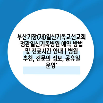 부산기장(재)일신기독교선교회 정관일신기독병원 예약 방법 및 진료시간 공지 | 병원 추천, 전연락 정보, 공휴일 운영’ 에 대해 자주 묻는 질문 TOP 5