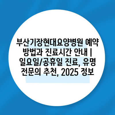 부산기장현대요양병원 예약 방법과 진료시간 안내 | 일요일/공휴일 진료, 유명 전문의 추천, 2025 정보