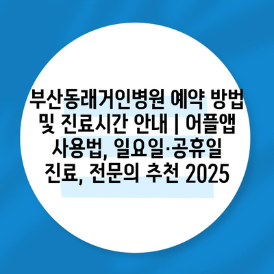 부산동래거인병원 예약 방법 및 진료시간 공지 | 어플앱 사용법, 일요일·공휴일 진료, 전연락 추천 2025 에 대해 자주 묻는 질문 TOP 5
