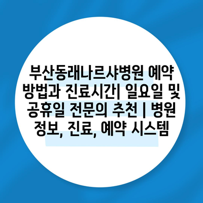 부산동래나르샤병원 예약 방법과 진료시간| 일요일 및 공휴일 전연락 추천 | 병원 정보, 진료, 예약 시스템 에 대해 자주 묻는 질문 TOP 5