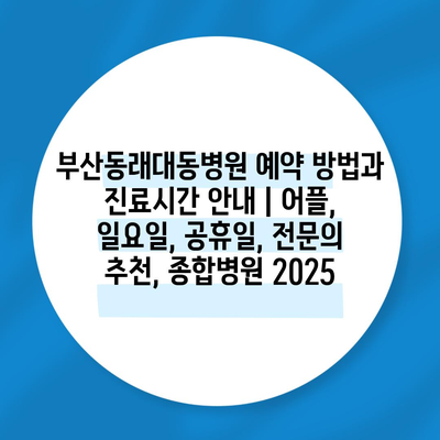 부산동래대동병원 예약 방법과 진료시간 공지 | 어플, 일요일, 공휴일, 전연락 추천, 종합병원 2025 에 대해 자주 묻는 질문 TOP 5