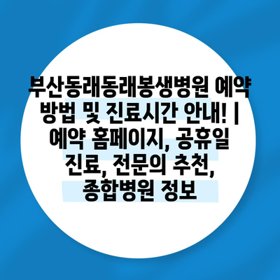 부산동래동래봉생병원 예약 방법 및 진료시간 안내! | 예약 홈페이지, 공휴일 진료, 전문의 추천, 종합병원 정보
