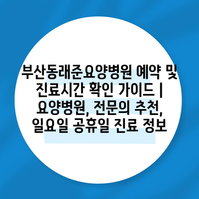 부산동래준요양병원 예약 및 진료시간 확인 설명서 | 요양병원, 전연락 추천, 일요일 공휴일 진료 정보 에 대해 자주 묻는 질문 TOP 5