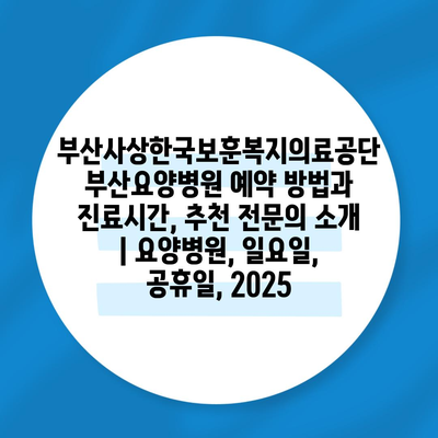 부산사상한국보훈복지의료공단 부산요양병원 예약 방법과 진료시간, 추천 전연락 소개 | 요양병원, 일요일, 공휴일, 2025 에 대해 자주 묻는 질문 TOP 5