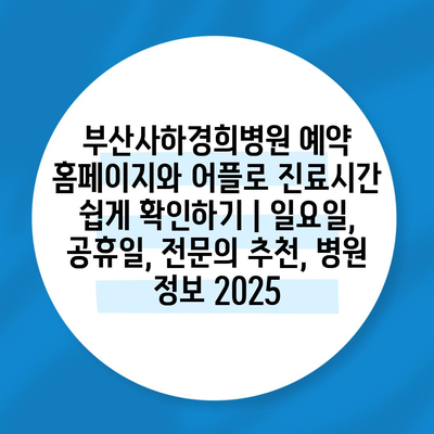 부산사하경희병원 예약 홈페이지와 어플로 진료시간 쉽게 확인하기 | 일요일, 공휴일, 전연락 추천, 병원 정보 2025 에 대해 자주 묻는 질문 TOP 5