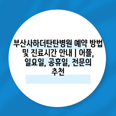 ✅ 부산사하더탄탄병원의 예약 방법과 진료시간을 알아보세요!