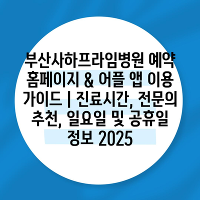 부산사하프라임병원 예약 홈페이지 & 어플 앱 이용 설명서 | 진료시간, 전연락 추천, 일요일 및 공휴일 정보 2025에 대해 소개합니다.