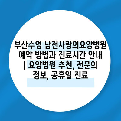 부산수영 남천사랑의요양병원 예약 방법과 진료시간 공지 | 요양병원 추천, 전연락 정보, 공휴일 진료 에 대해 자주 묻는 질문 TOP 5