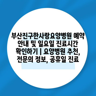 ✅ 부산진구한사랑요양병원의 예약 방법을 자세히 알아보세요.
