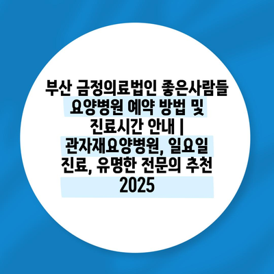 부산 금정의료법인 좋은사람들 요양병원 예약 방법 및 진료시간 공지 | 관자재요양병원, 일요일 진료, 유명한 전연락 추천 2025 에 대해 자주 묻는 질문 TOP 5