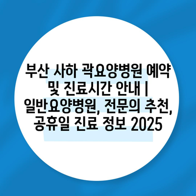 부산 사하 곽요양병원 예약 및 진료시간 안내 | 일반요양병원, 전문의 추천, 공휴일 진료 정보 2025