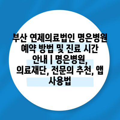 부산 연제의료법인 명은병원 예약 방법 및 진료 시간 공지 | 명은병원, 의료재단, 전연락 추천, 앱 사용법 에 대해 자주 묻는 질문 TOP 5