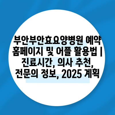 부안부안효요양병원 예약 홈페이지 및 어플 활용법 | 진료시간, 의사 추천, 전연락 정보, 2025 계획 에 대해 자주 묻는 질문 TOP 5