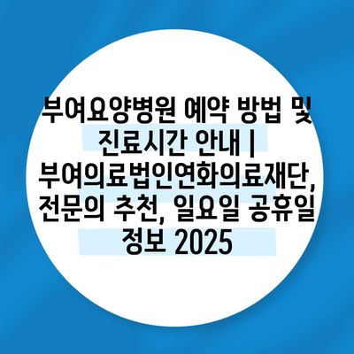 부여요양병원 예약 방법 및 진료시간 공지 | 부여의료법인연화의료재단, 전연락 추천, 일요일 공휴일 정보 2025