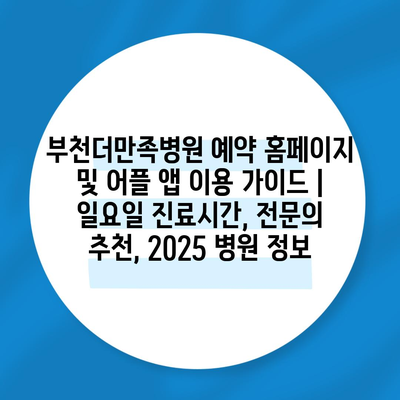 부천더만족병원 예약 홈페이지 및 어플 앱 이용 가이드 | 일요일 진료시간, 전문의 추천, 2025 병원 정보