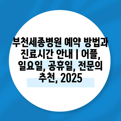 ✅ 부천세종병원의 예약 방법과 진료 시간을 자세히 알아보세요.