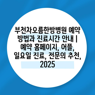 부천차오름한방병원 예약 방법과 진료시간 공지 | 예약 홈페이지, 어플, 일요일 진료, 전연락 추천, 2025 에 대해 자주 묻는 질문 TOP 5