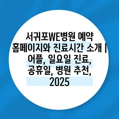 ✅ 서귀포WE병원의 진료시간과 예약 방법을 지금 바로 알아보세요!